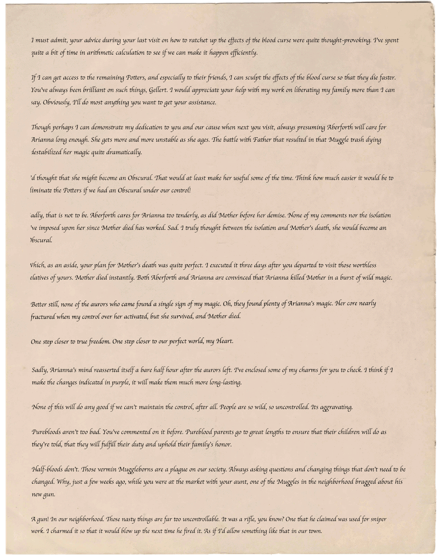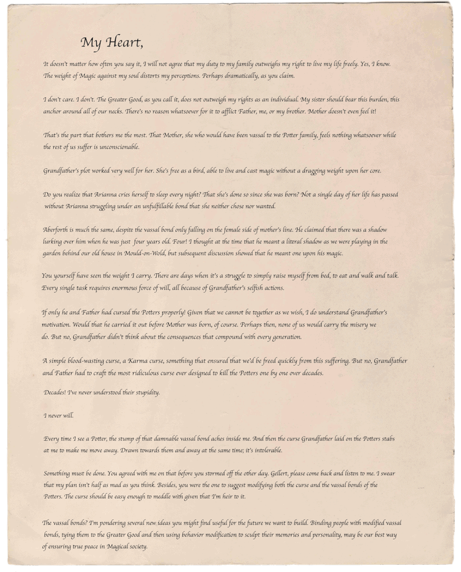 It was fun to read bits of the letter at a time in the chapter headers. I was trying to guess who wrote it first, then after I figured that out, what he’d reveal next. Quite clever!