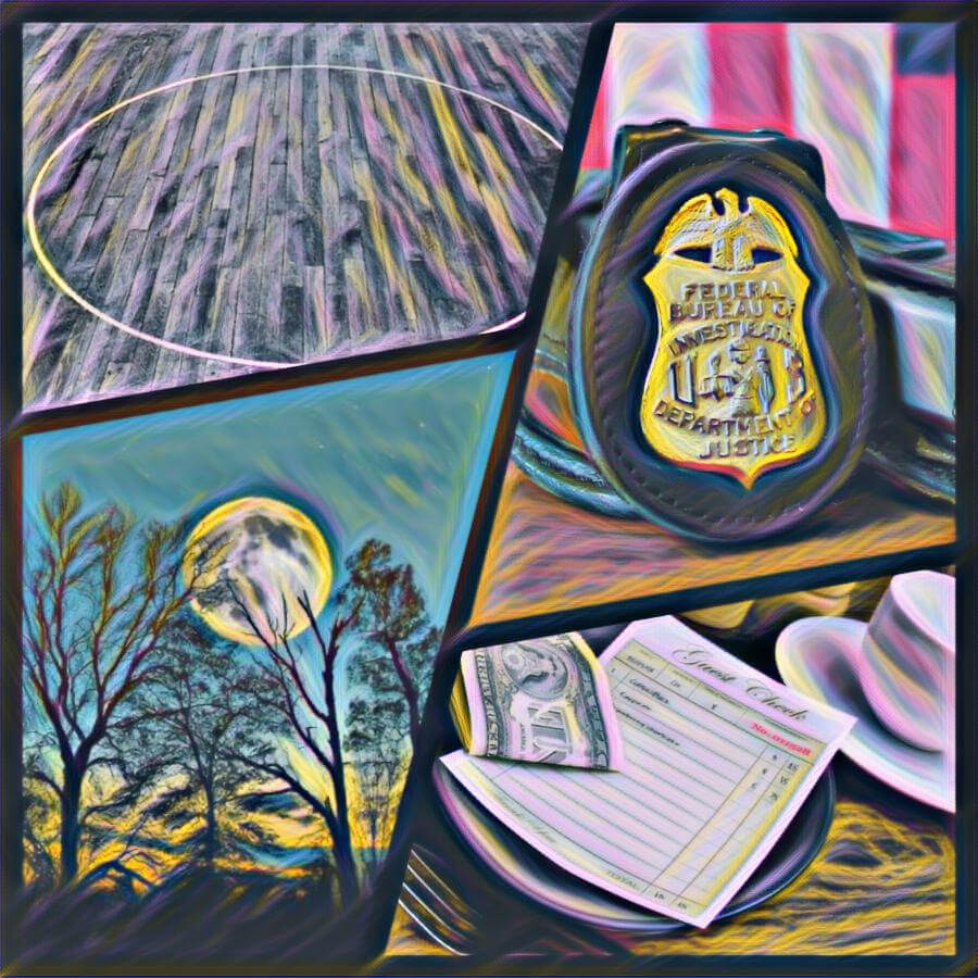 Great art! I really like the photo collage with the camera and jail and hunter/police stuff; it’s really well done, especially the composition. I also love how everyone else is in color but Scott is always gray scale (because he’s dead, right? ). It’s clever.